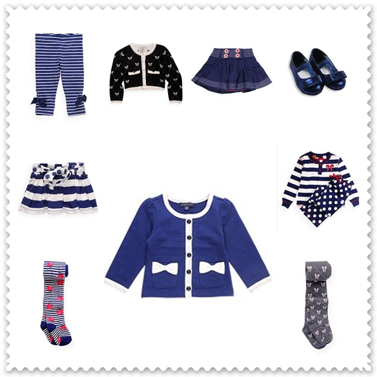 圖中那件藍白色系的胡蝶結外衣好有小香的味道,小女生穿起來必然很都雅!